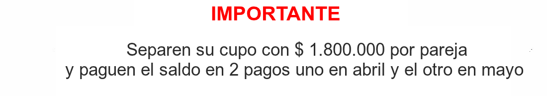 Plan exclusivo para 20 parejas, Aseguren su cupo en febrero !