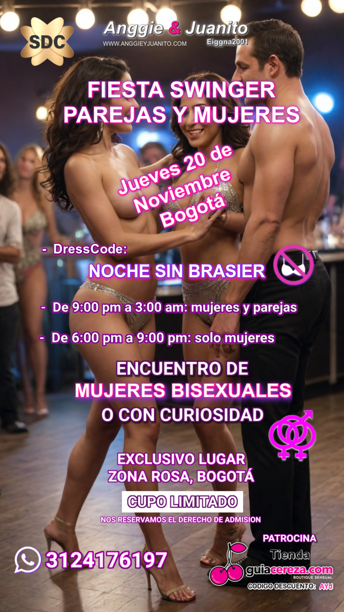 Desde la 9:00 pm pueden llegar los parejos y otras parejas a la fiesta swinger   - Show para las parejas (11:30 pm)- DJ con la mejor rumba