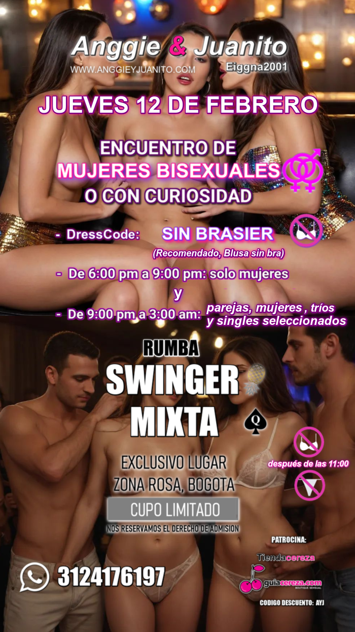 Desde la 9:00 pm pueden llegar los parejos y otras parejas y un número limitado de singles seleccionados (con reglas y limites claros) a la fiesta swinger