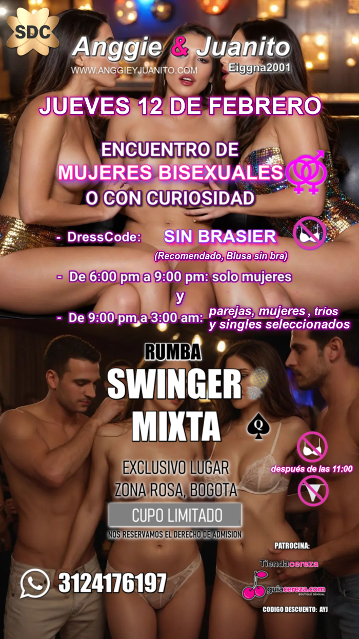 Desde la 9:00 pm pueden llegar los parejos y otras parejas y un número limitado de singles seleccionados (con reglas y limites claros) a la fiesta swinger