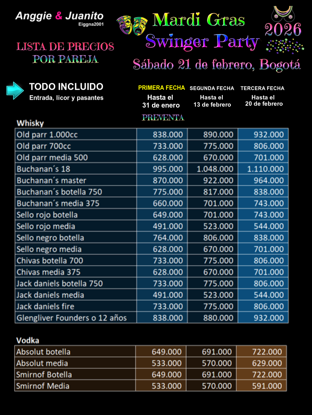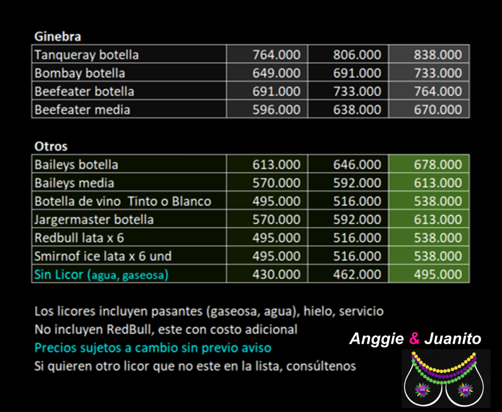 A continuación encontrarán los precios, opciones y forma de pago para la fiesta